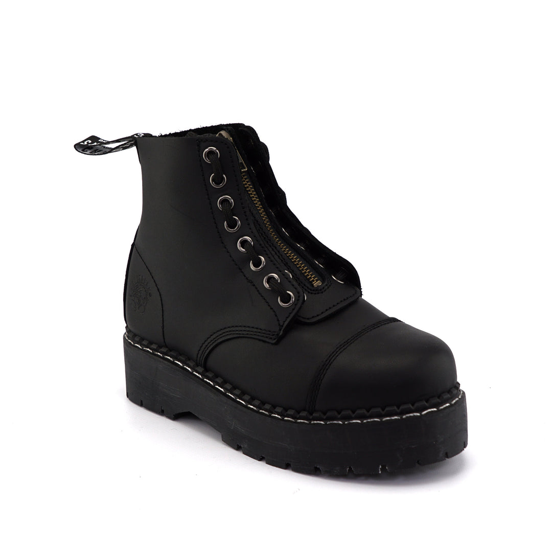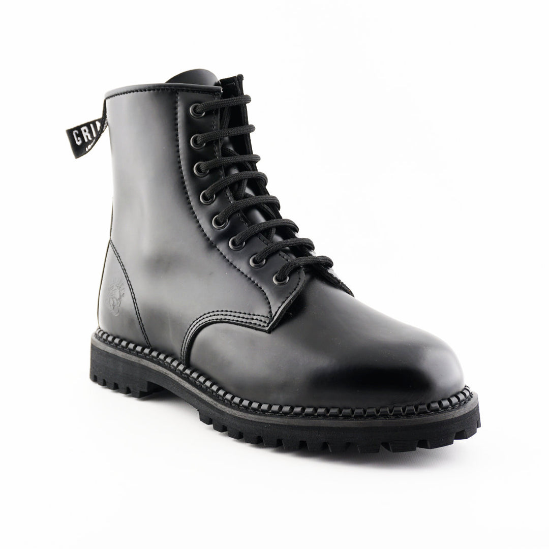 Grinders CAMERON Zip & Lace Up Derby Boots Rock Black Leather