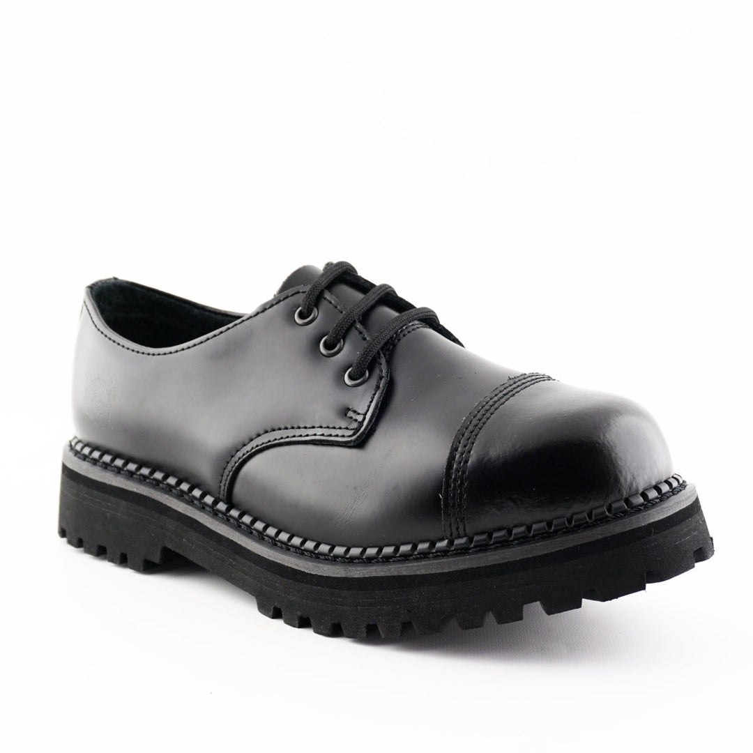 Grinders BOXER Steel Toe Cap Oxford Lace Up Shoes New Gibson Rock Black Leather
