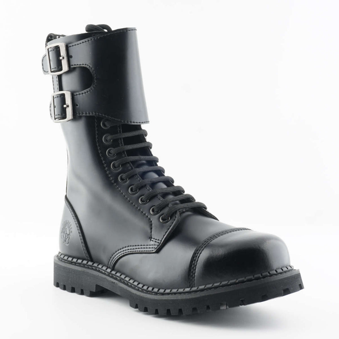 Grinders BULLDOG 10 Eyelet Steel Toe Cap Boots New Black Leather Rock